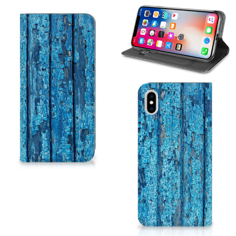 Apple iPhone Xs Max Book Wallet Case Wood Blue