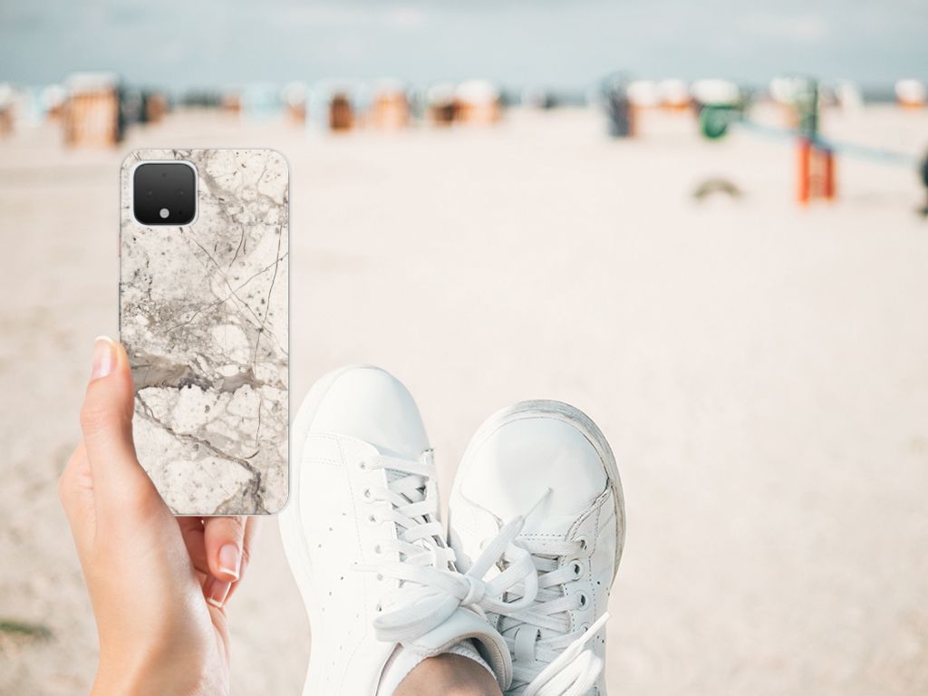 Google Pixel 4 TPU Siliconen Hoesje Marmer Beige