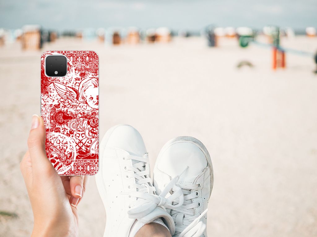 Silicone Back Case Google Pixel 4 Angel Skull Rood