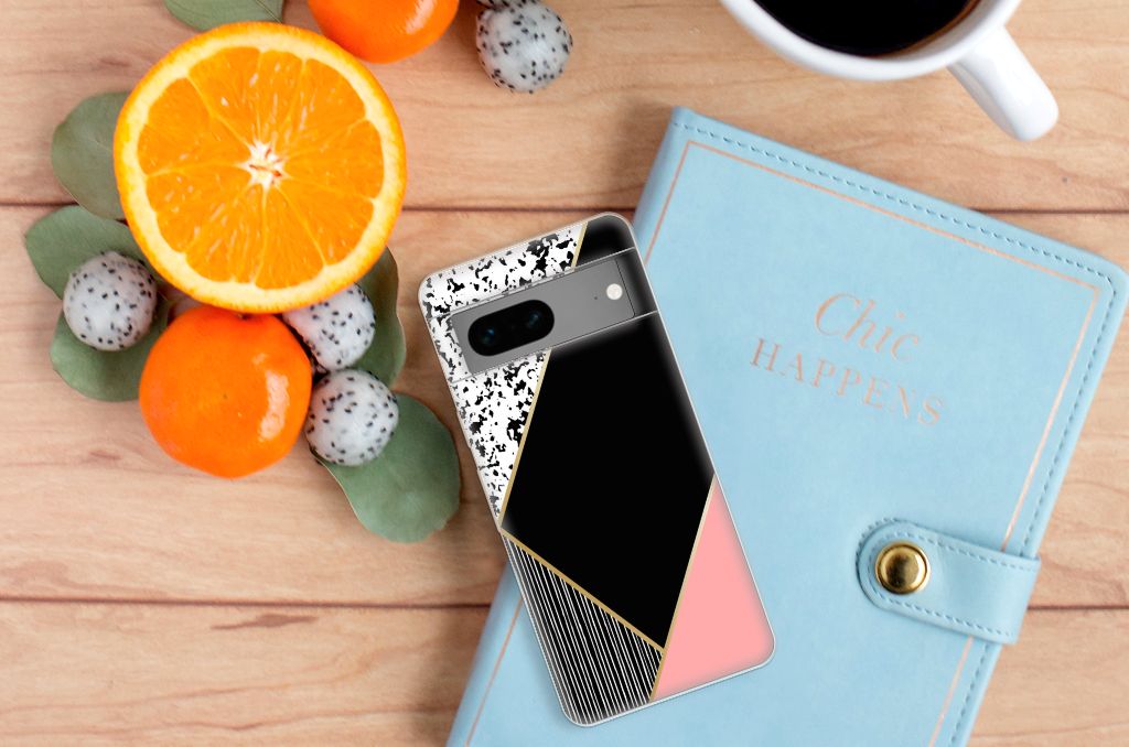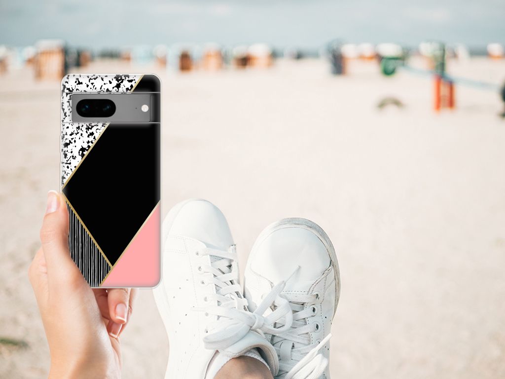 Google Pixel 7 TPU Hoesje Zwart Roze Vormen