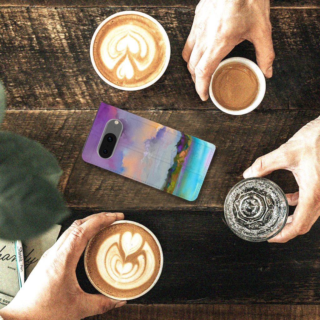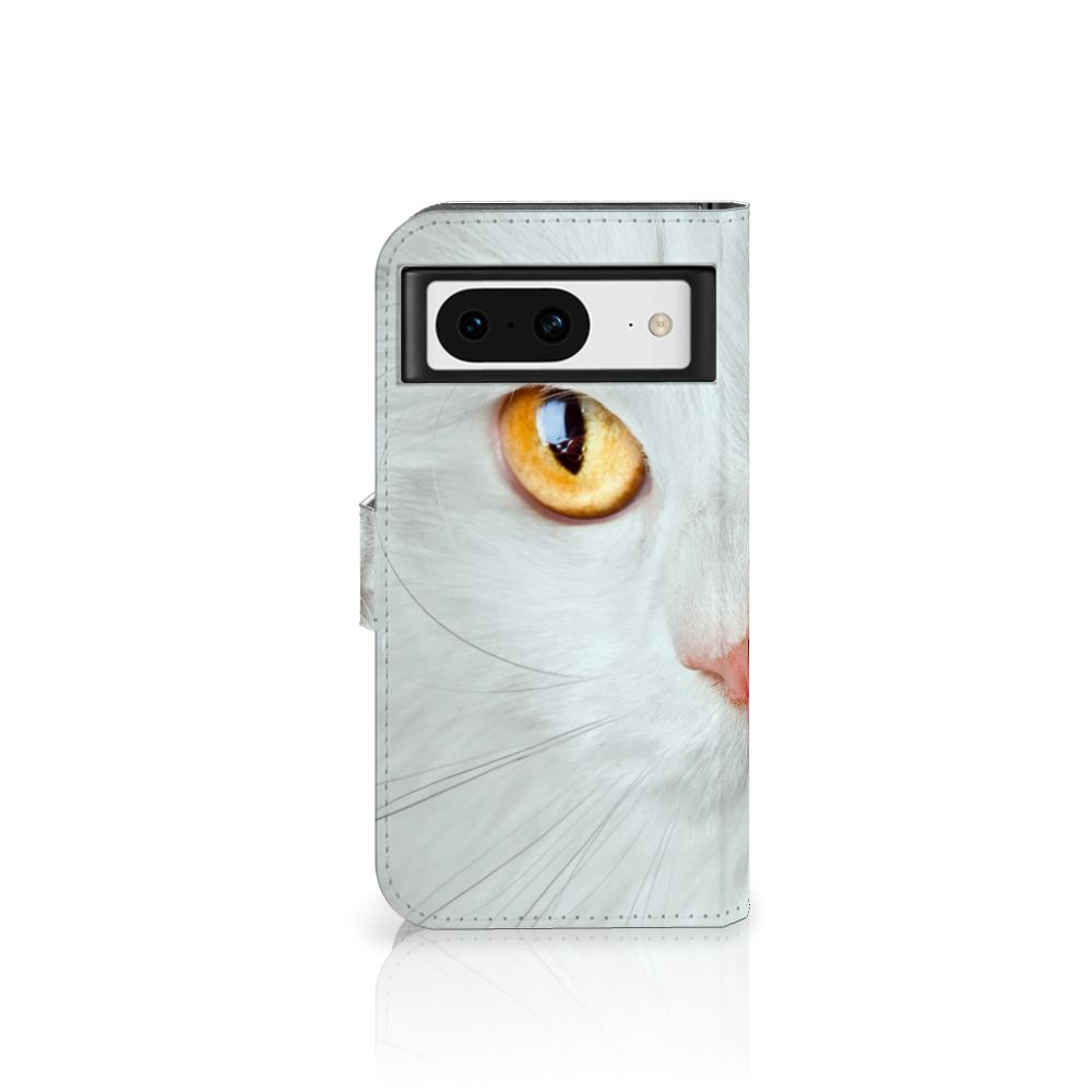 Google Pixel 8 Telefoonhoesje met Pasjes Witte Kat