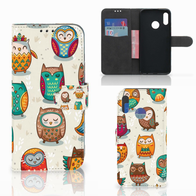 Honor 10 Lite Telefoonhoesje met Pasjes Vrolijke Uilen