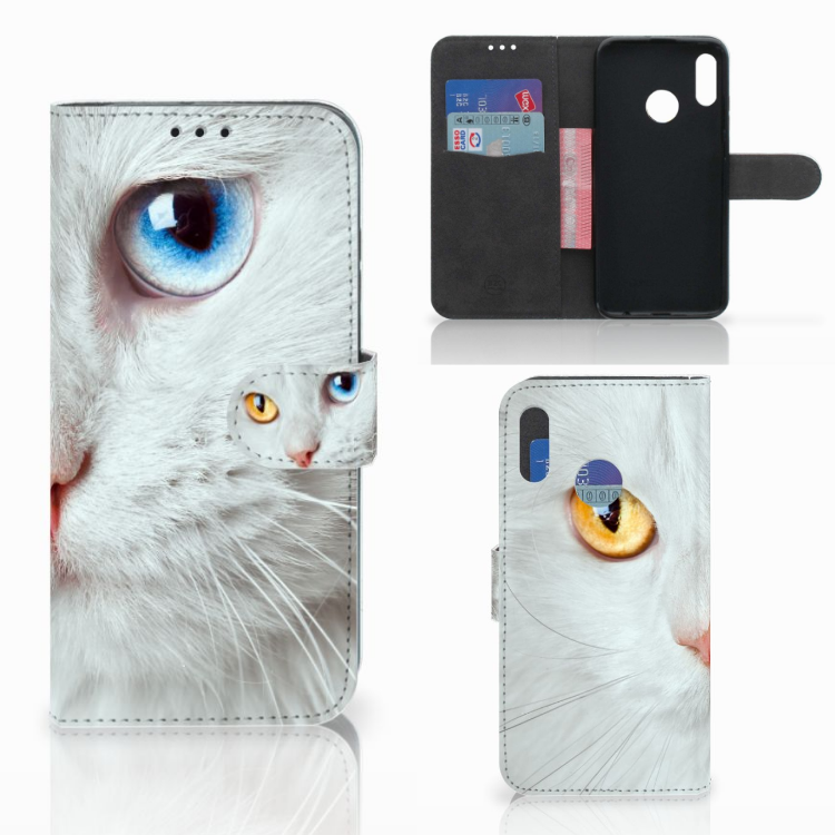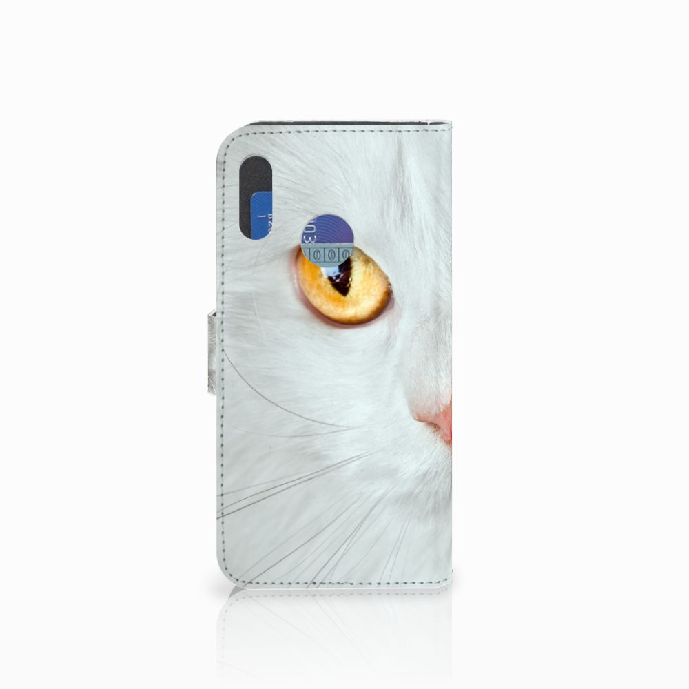 Honor 10 Lite Telefoonhoesje met Pasjes Witte Kat