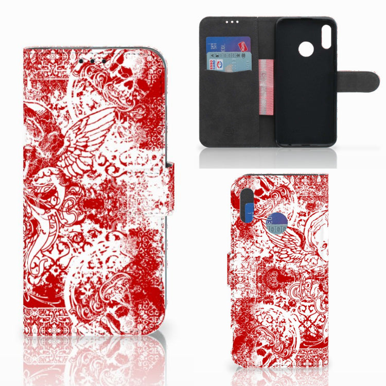 Telefoonhoesje met Naam Honor 10 Lite Angel Skull Rood