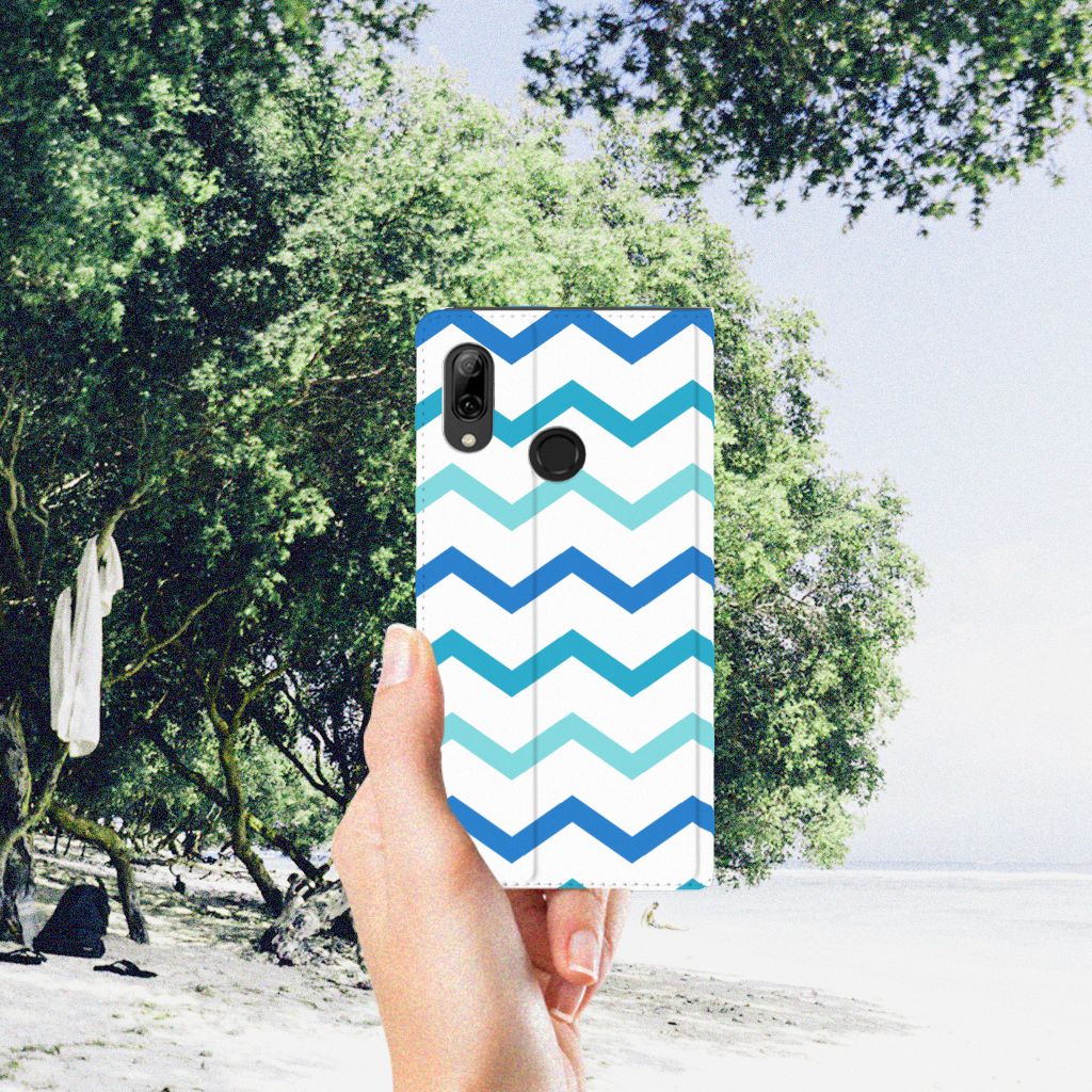Huawei P Smart (2019) Hoesje met Magneet Zigzag Blauw