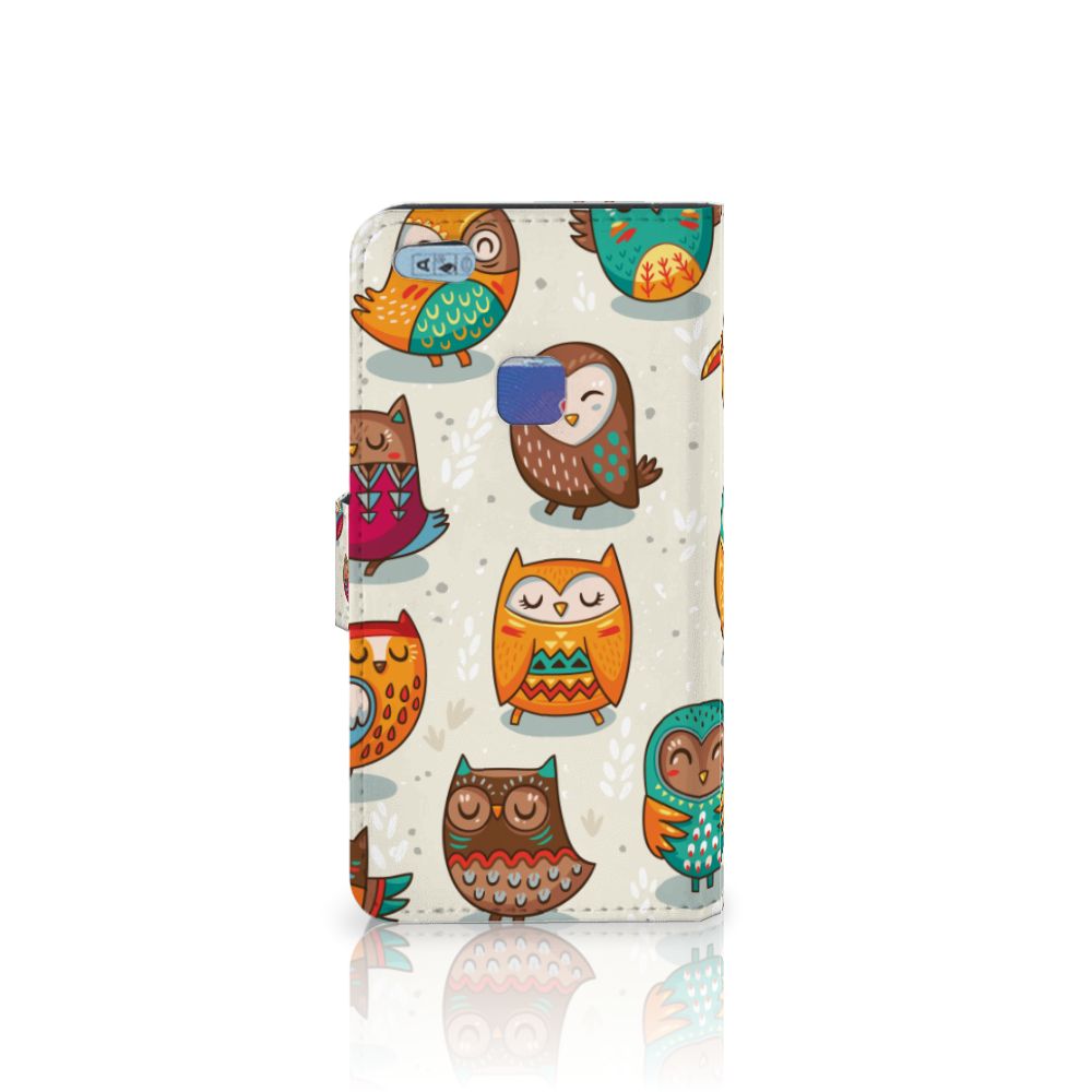 Huawei P10 Lite Telefoonhoesje met Pasjes Vrolijke Uilen