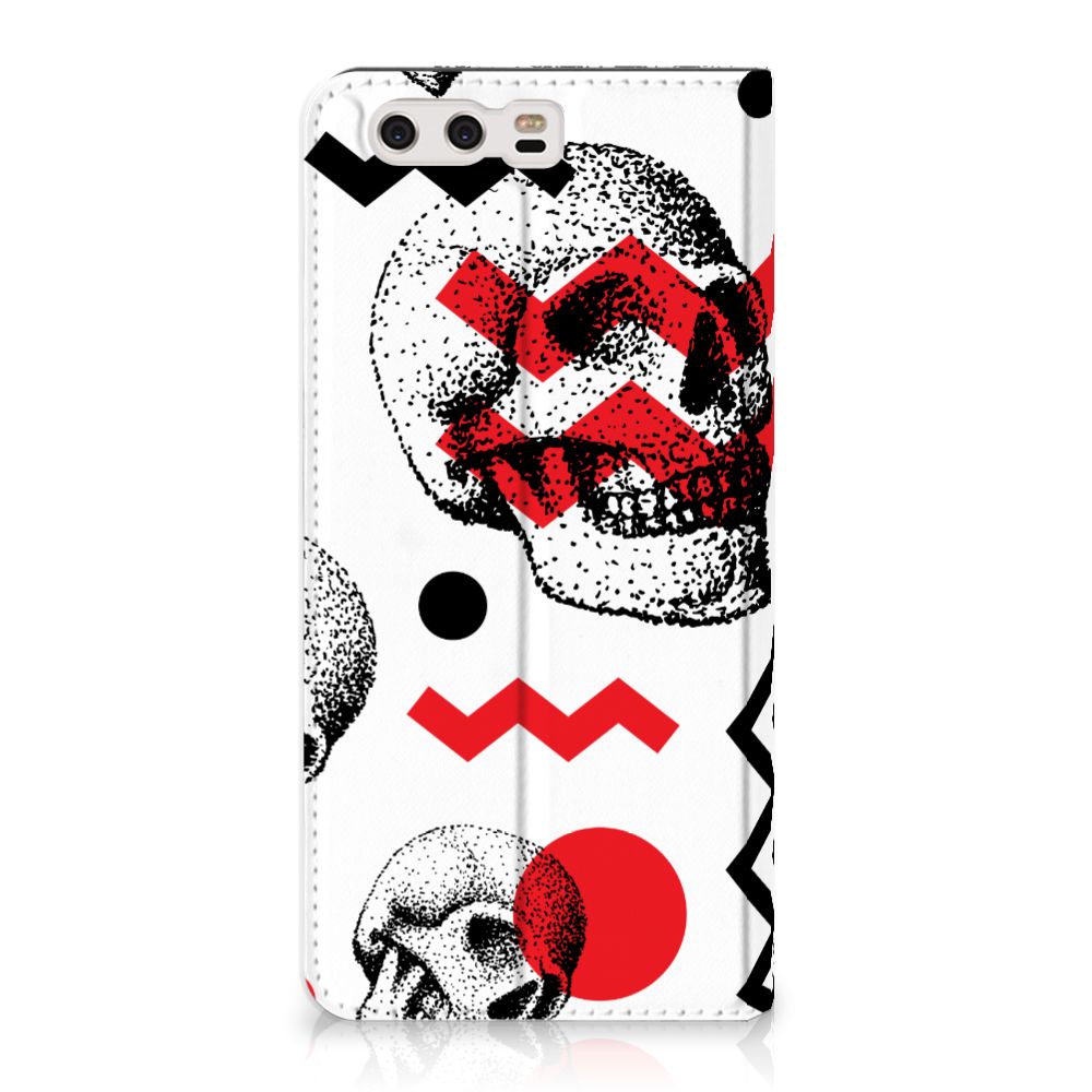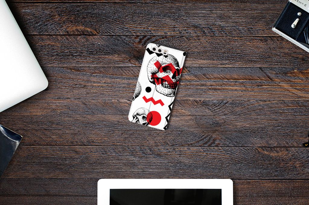 Mobiel BookCase Huawei P10 Plus Skull Red