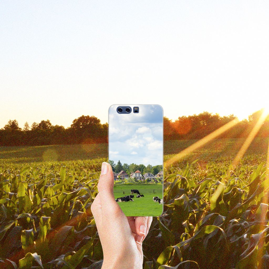 Huawei P10 Plus TPU Siliconen Hoesje Marmer Wit Zwart - Origineel Cadeau Man