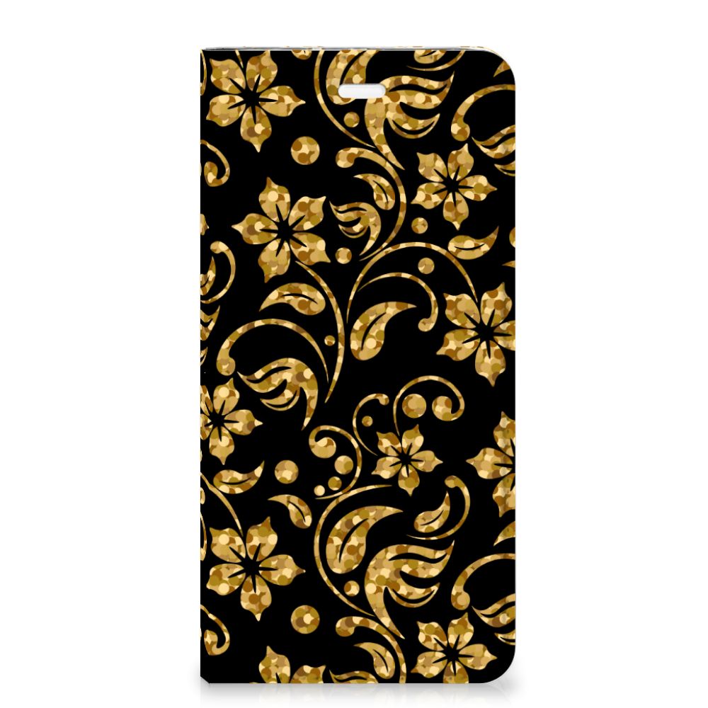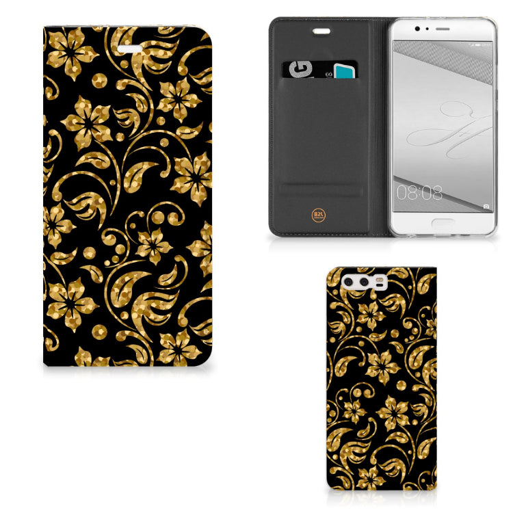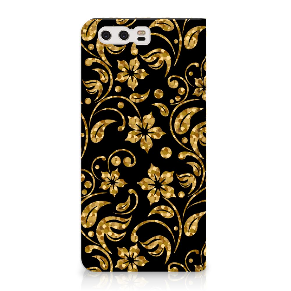 Huawei P10 Plus Smart Cover Gouden Bloemen