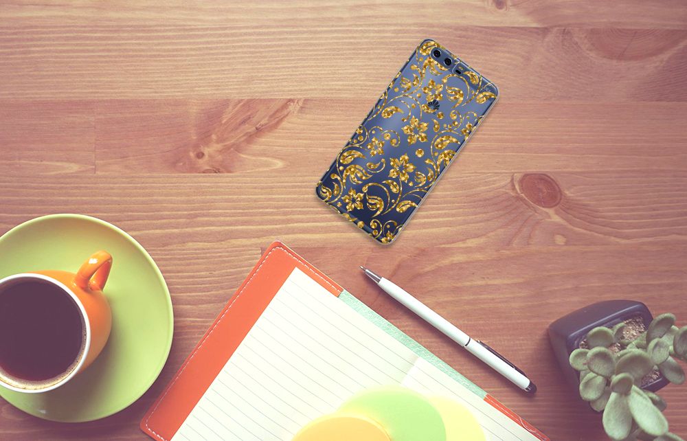 Huawei P10 Plus TPU Case Gouden Bloemen