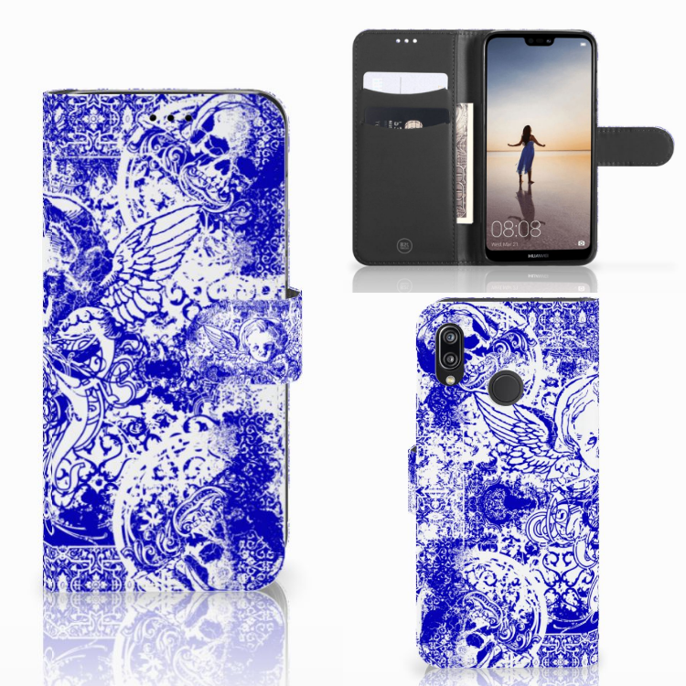 Telefoonhoesje met Naam Huawei P20 Lite Angel Skull Blauw