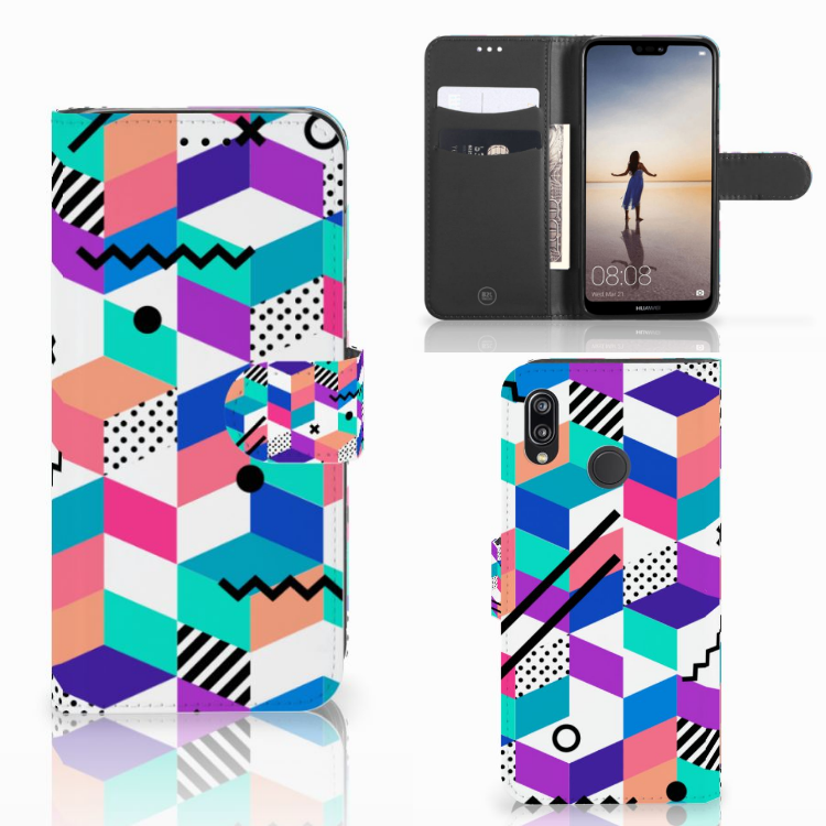 Huawei P20 Lite Book Case Blokken Kleurrijk