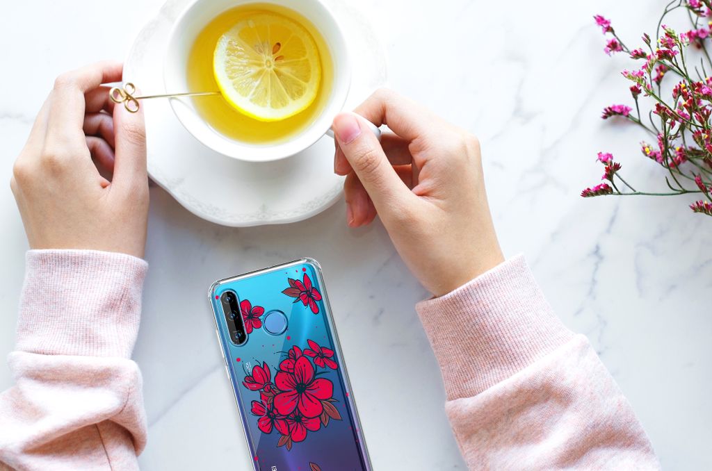 Huawei P30 Lite Doorzichtige Silicone Hoesje Batik Rood