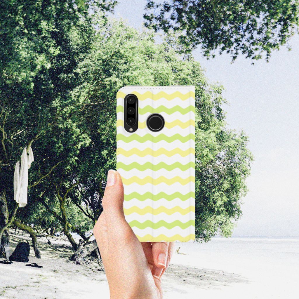 Huawei P30 Lite New Edition Hoesje met Magneet Waves Yellow