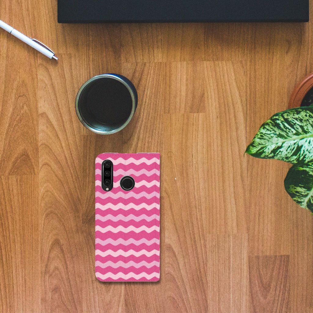 Huawei P30 Lite New Edition Hoesje met Magneet Waves Pink