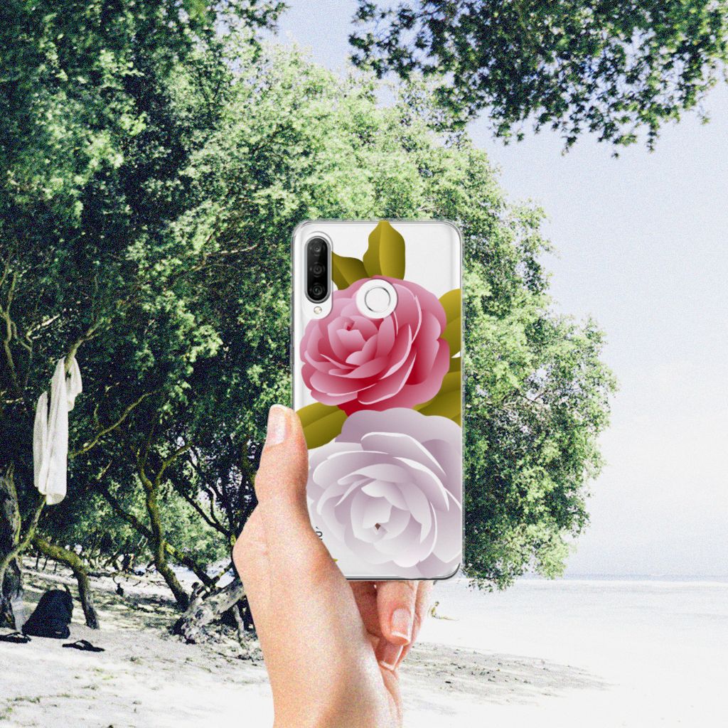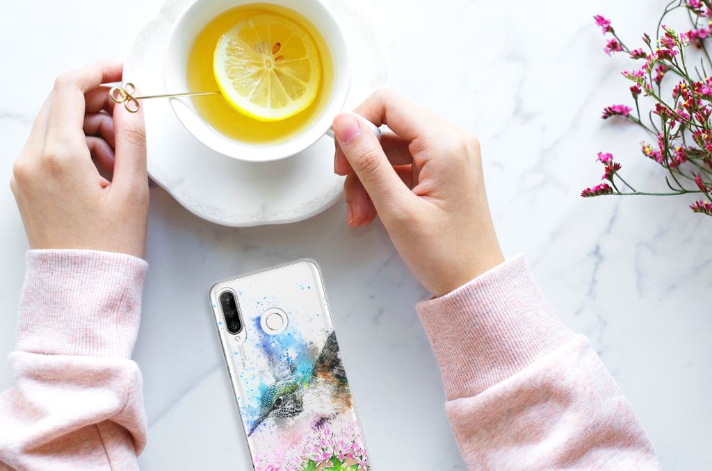 Huawei P30 Lite TPU Hoesje Pauw met Bloemen