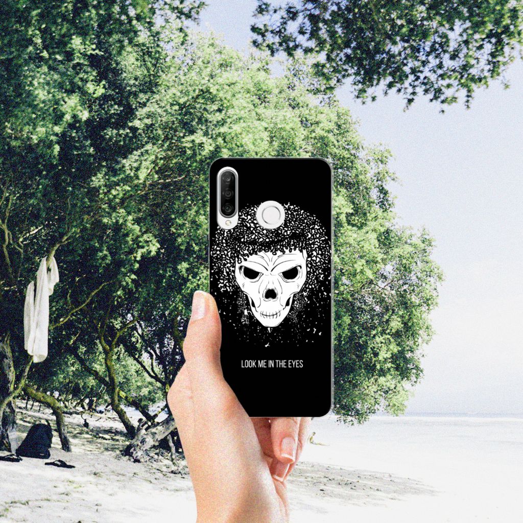 Silicone Back Case Huawei P30 Lite Skull Hair
