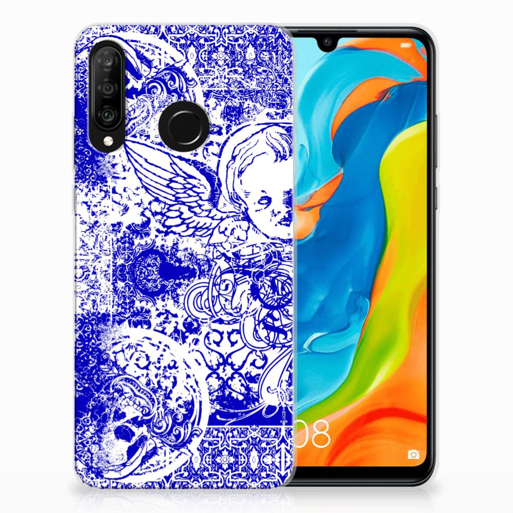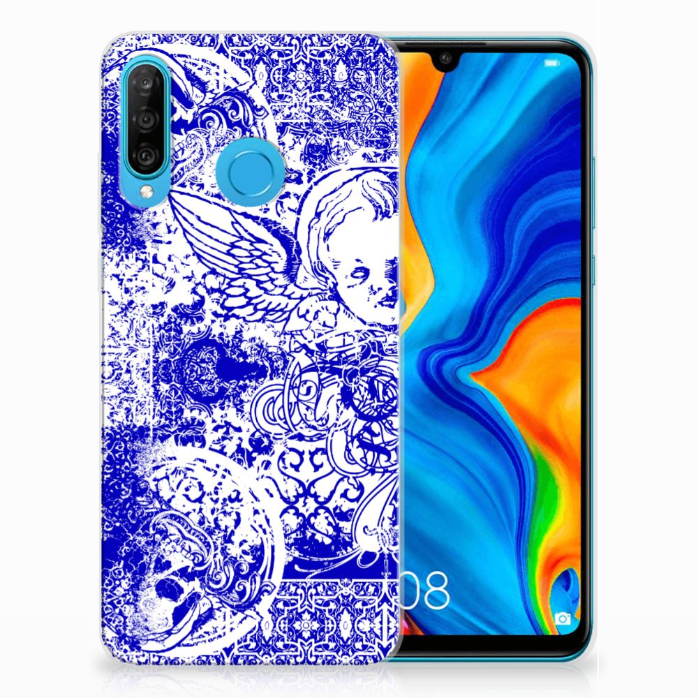 Silicone Back Case Huawei P30 Lite Angel Skull Blauw