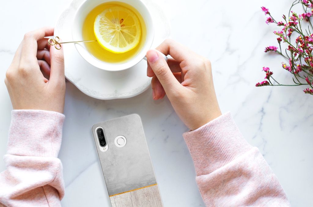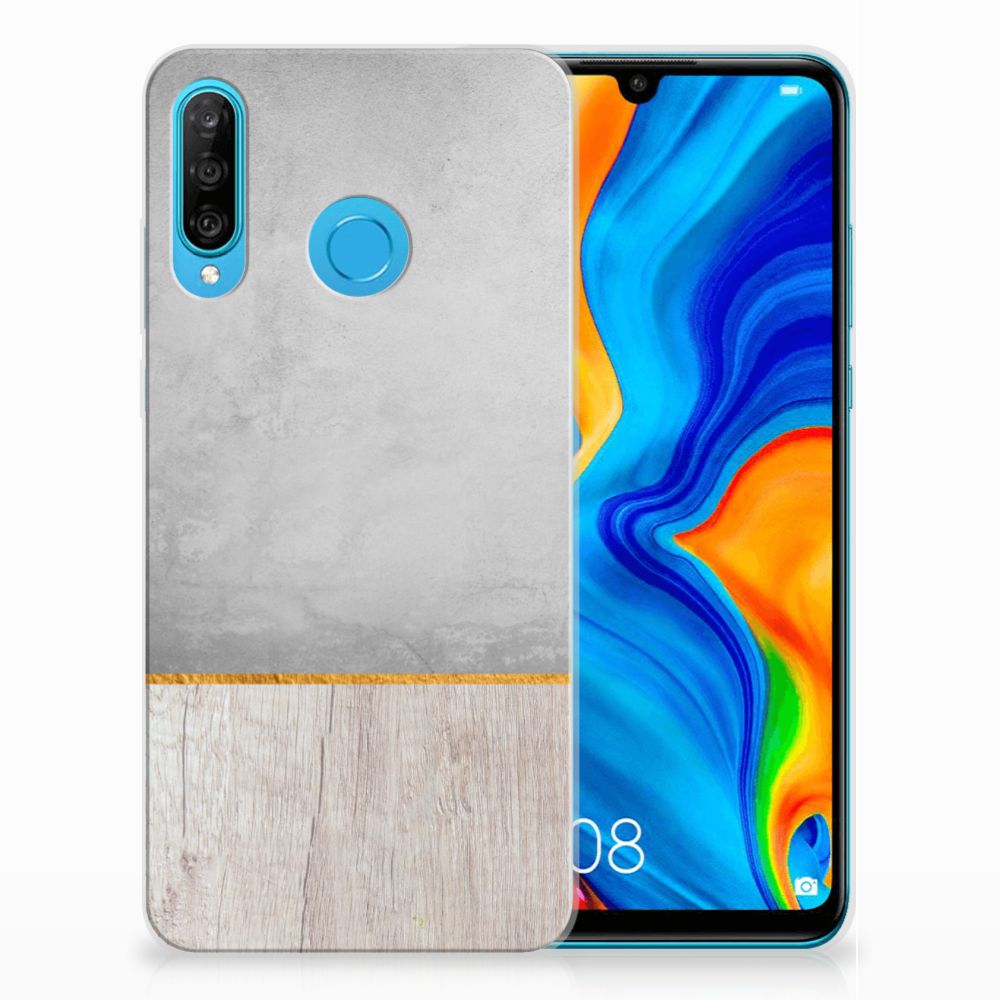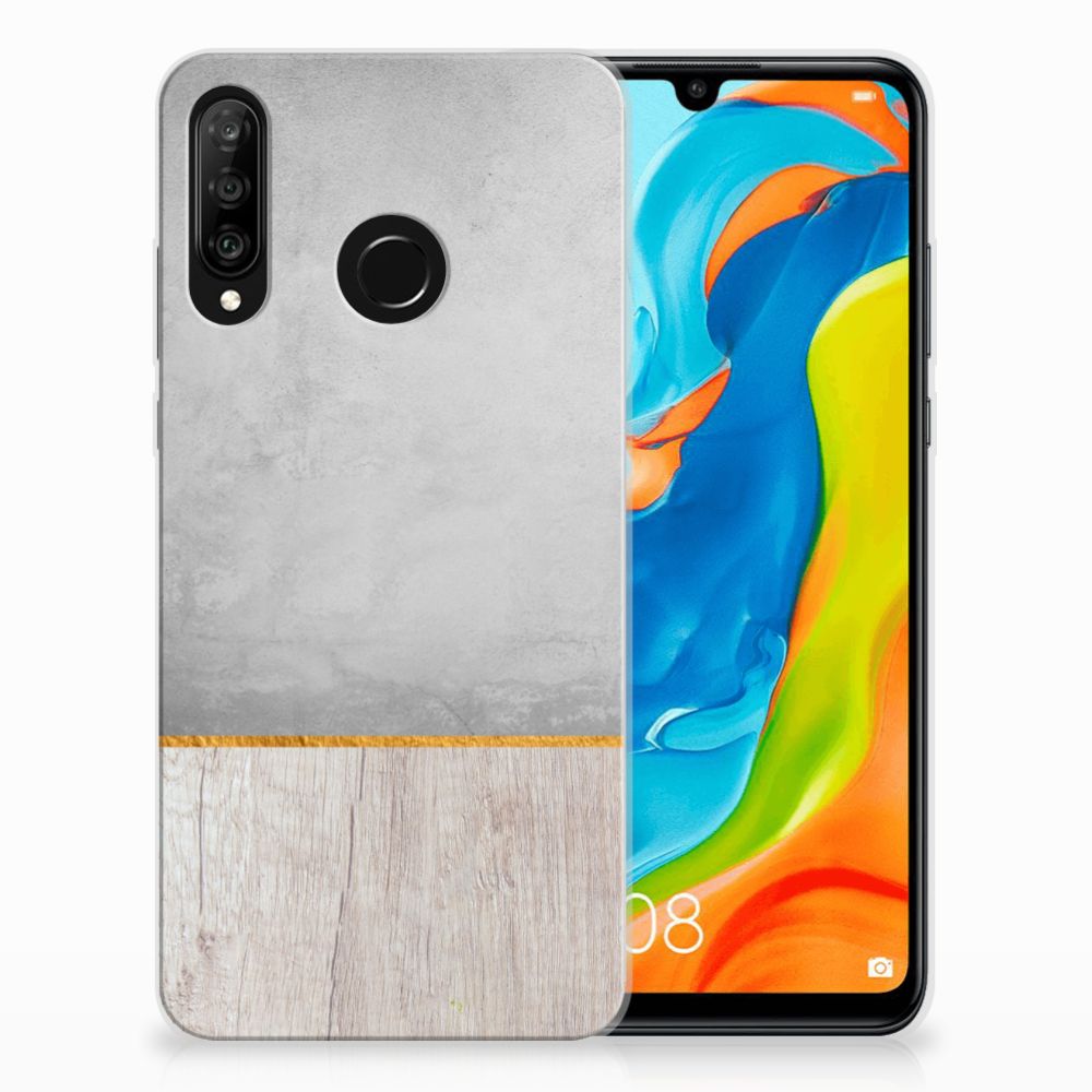 Huawei P30 Lite Bumper Hoesje Wood Concrete