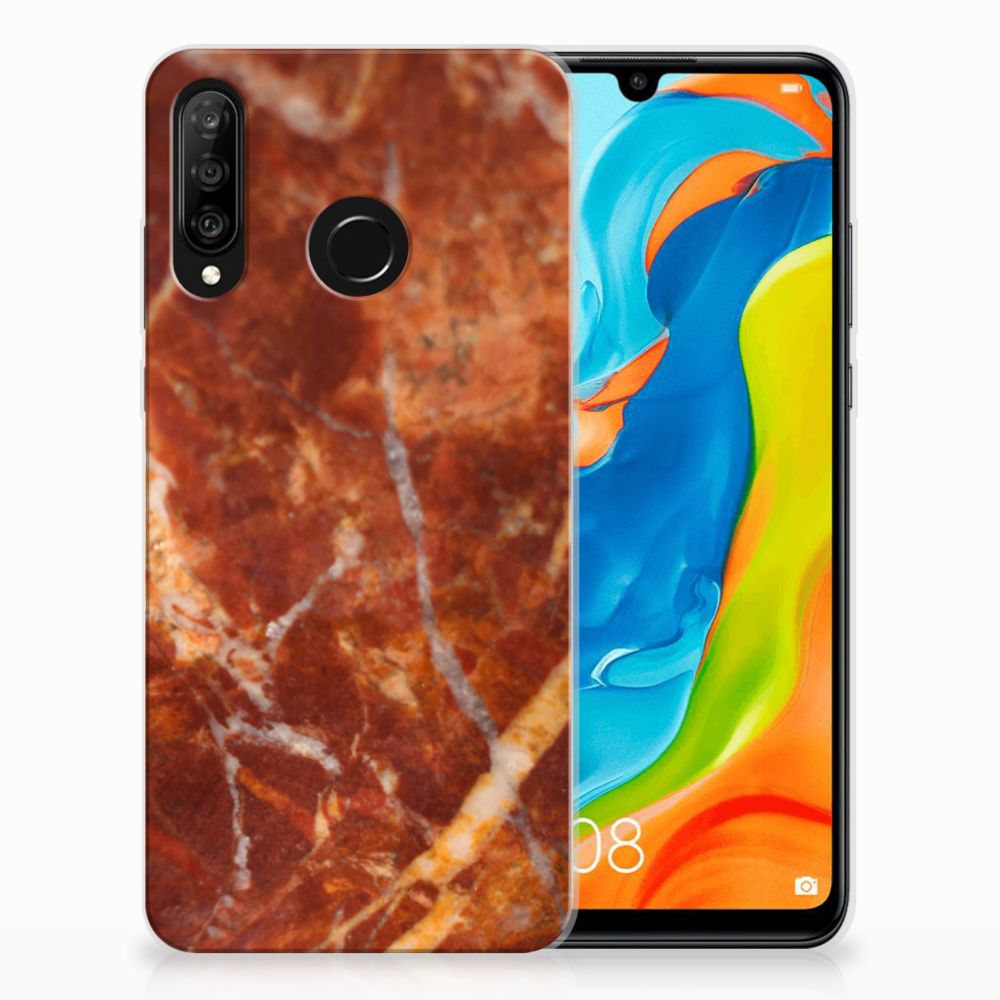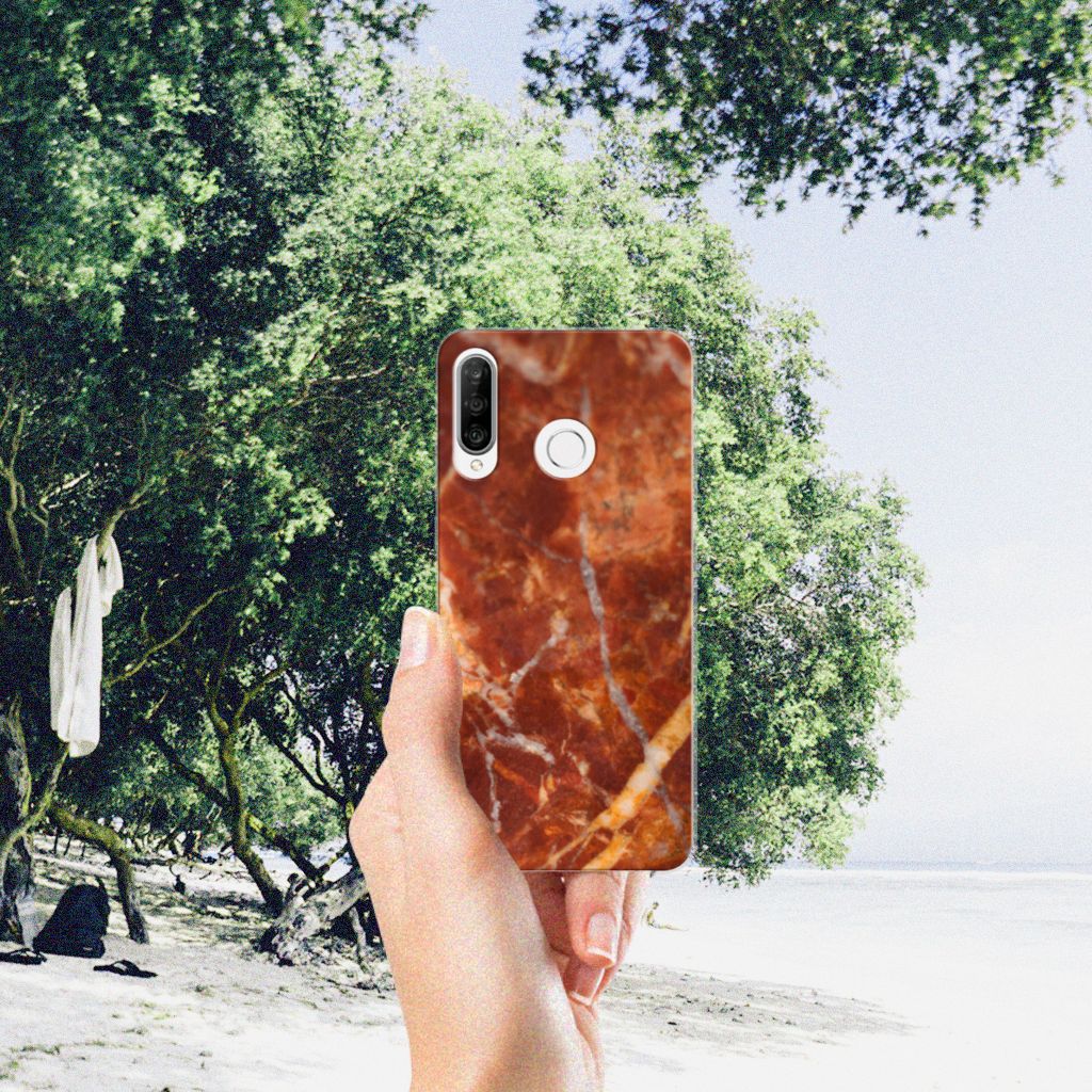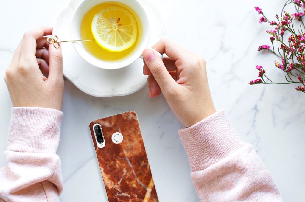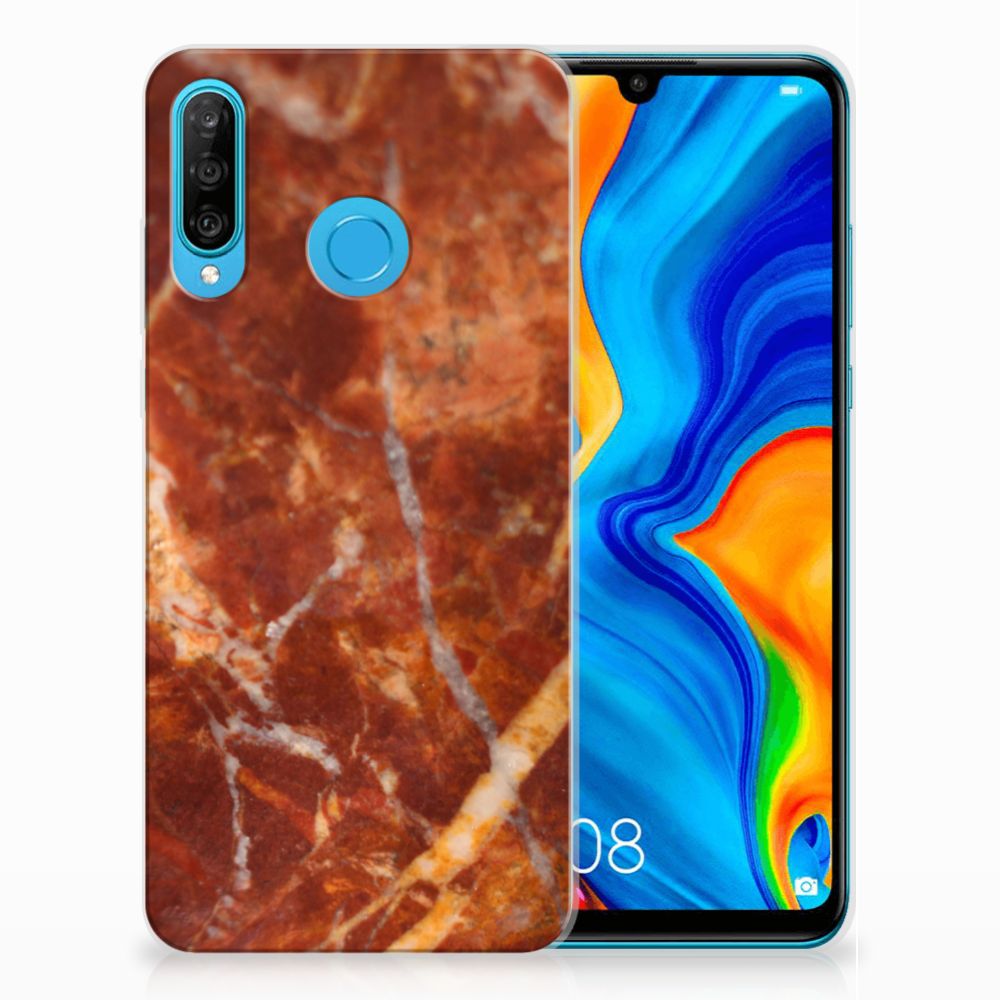 Huawei P30 Lite TPU Siliconen Hoesje Marmer Bruin