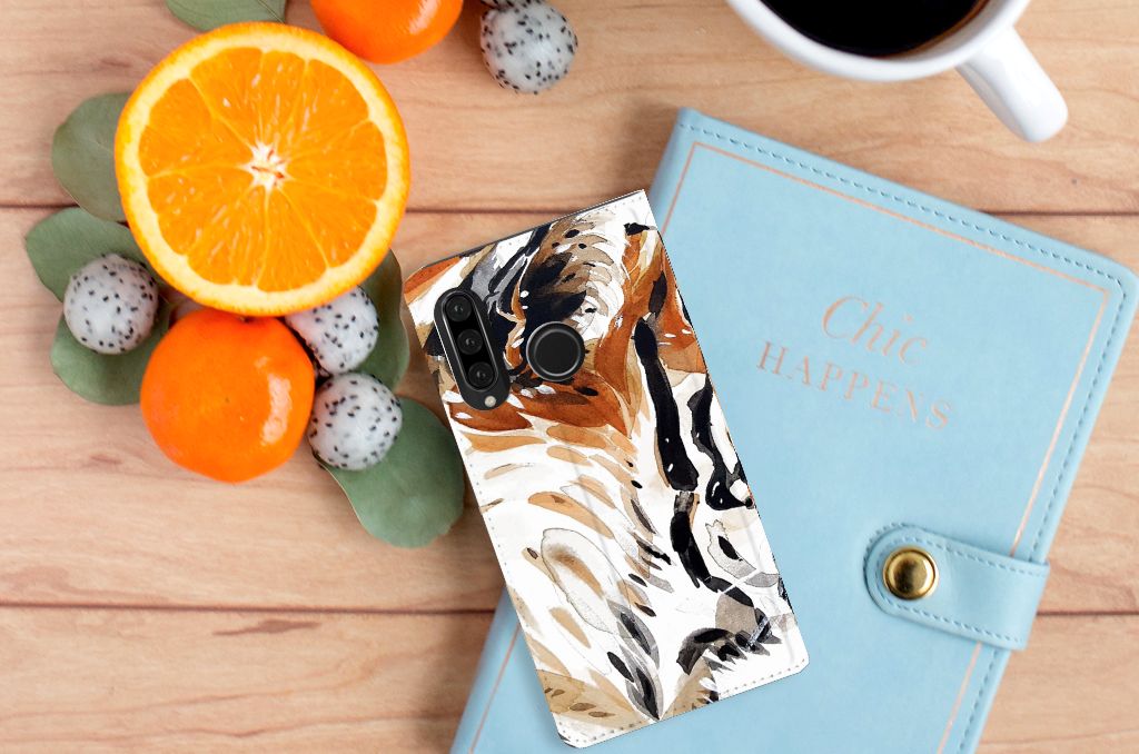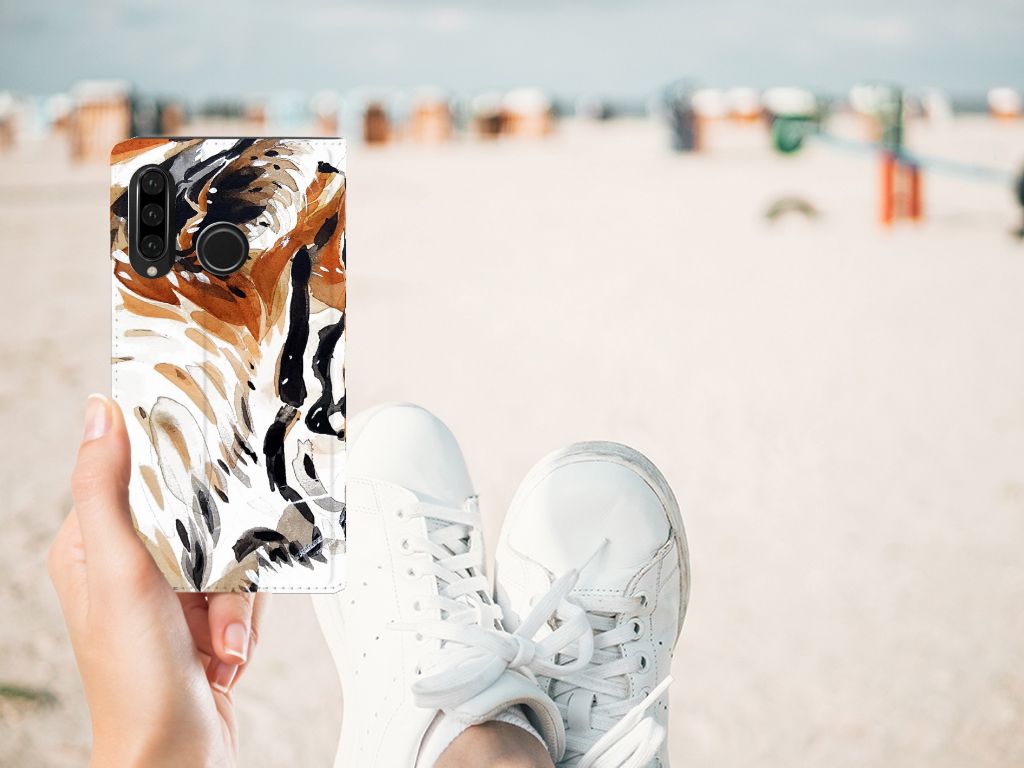Bookcase Huawei P30 Lite New Edition Watercolor Tiger