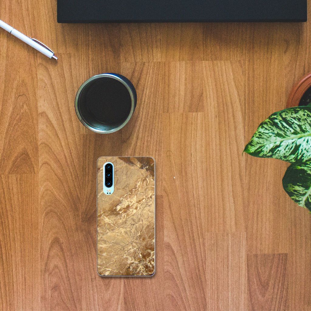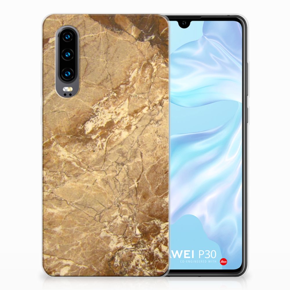Huawei P30 TPU Siliconen Hoesje Marmer Creme