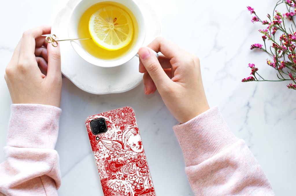 Silicone Back Case Huawei P40 Lite Angel Skull Rood