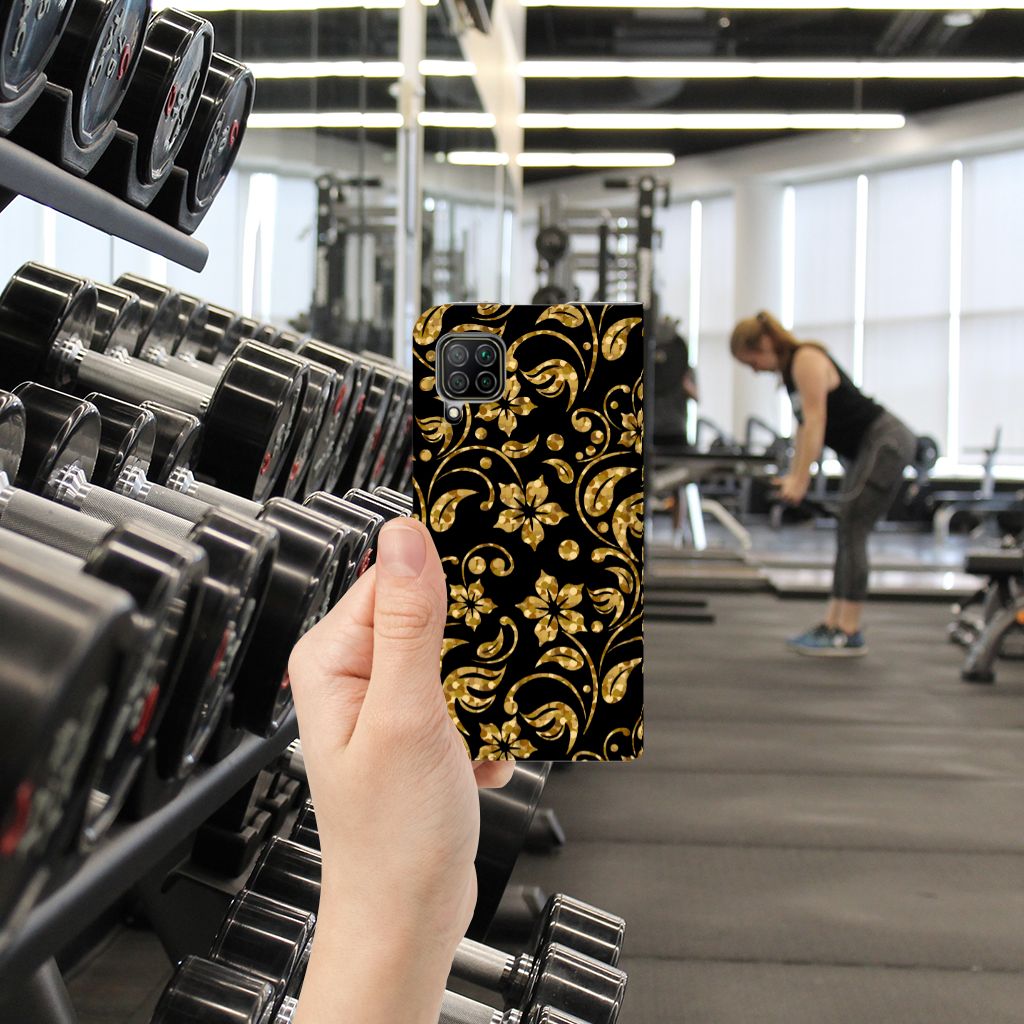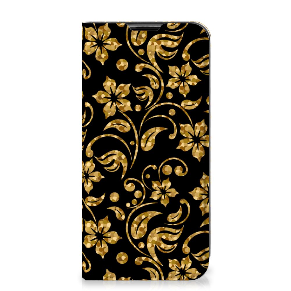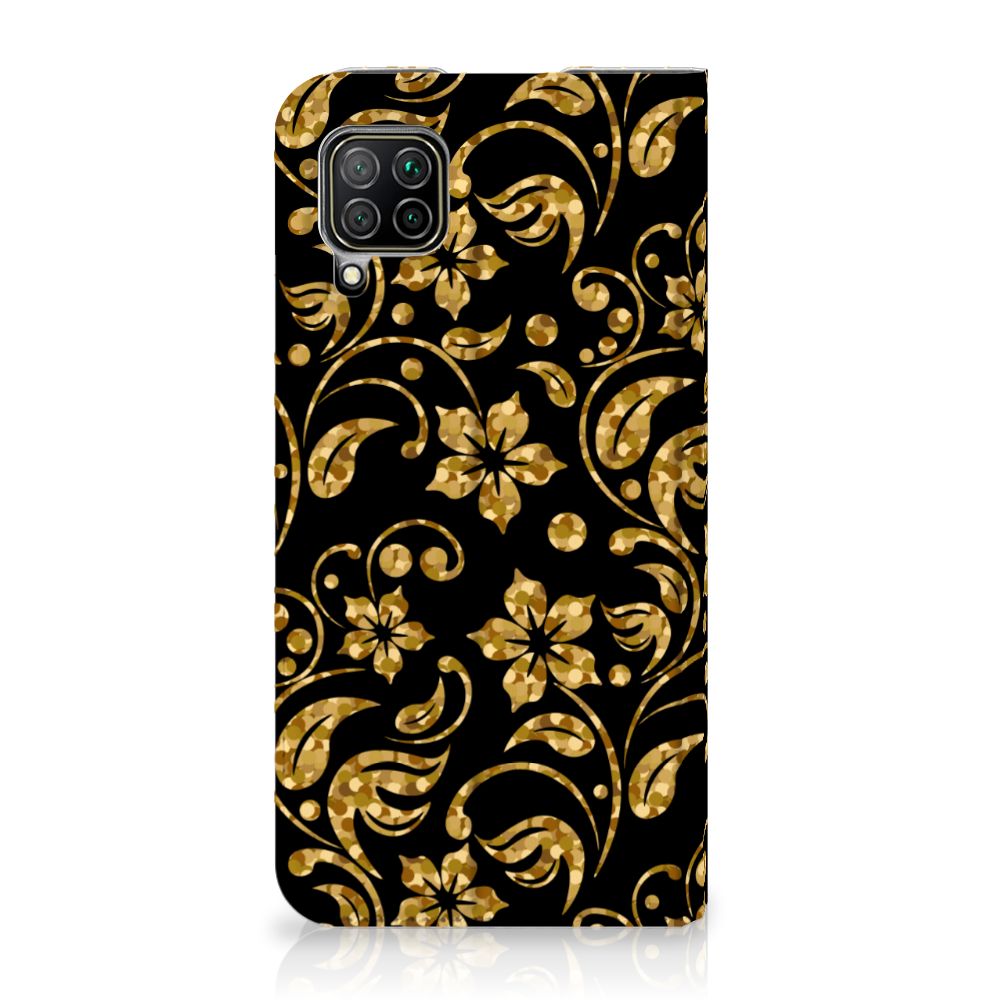 Huawei P40 Lite Smart Cover Gouden Bloemen