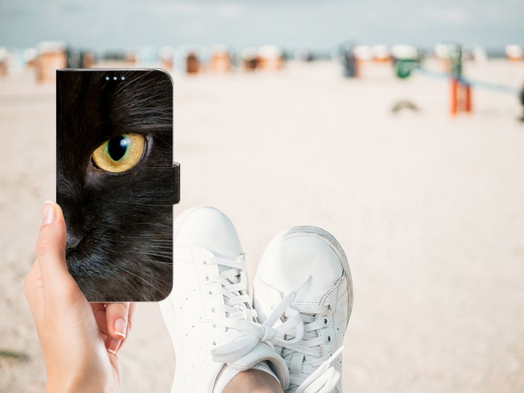 Huawei P40 Lite Telefoonhoesje met Pasjes Zwarte Kat