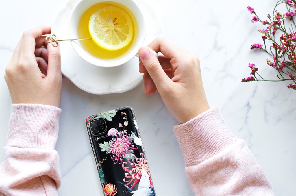 Huawei P40 Lite TPU Hoesje Bird Flowers