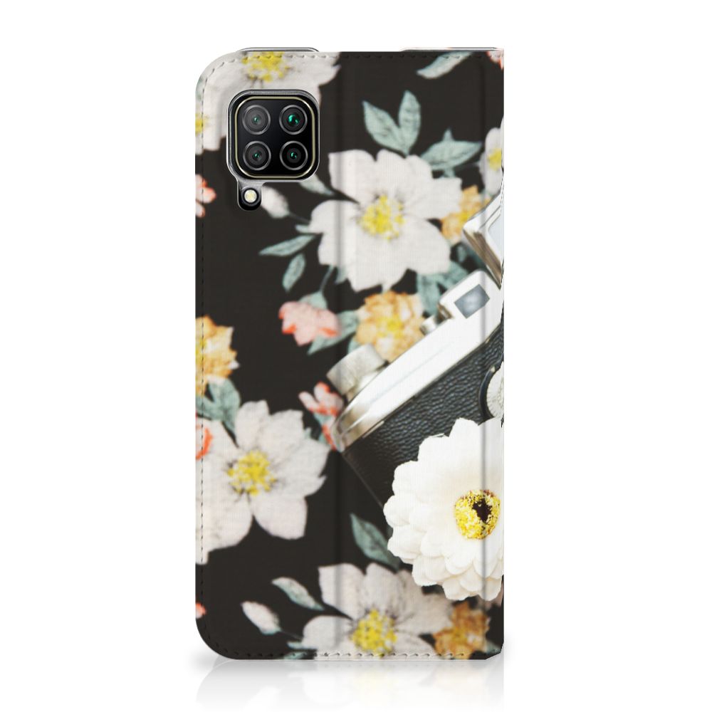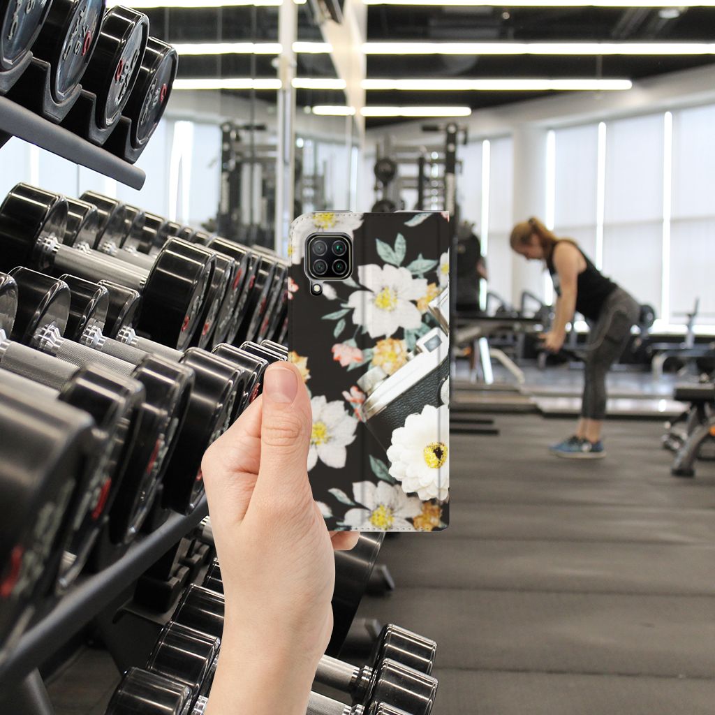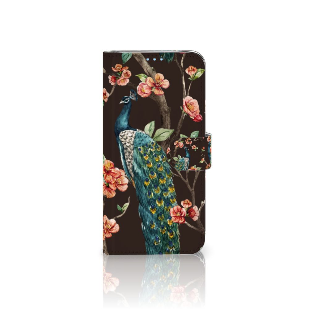 Huawei P40 Lite Telefoonhoesje met Pasjes Pauw met Bloemen