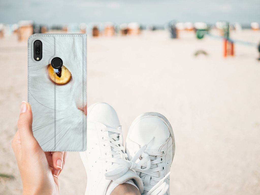 Huawei Y7 hoesje Y7 Pro (2019) Hoesje maken Witte Kat