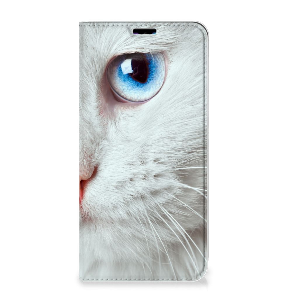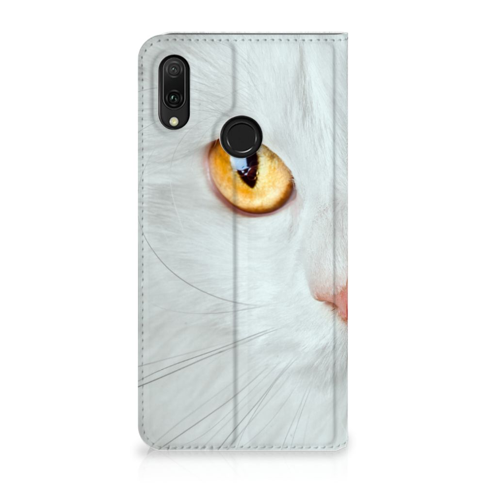 Huawei Y7 (2019) Telefoonhoesje met Pasjes Witte Kat