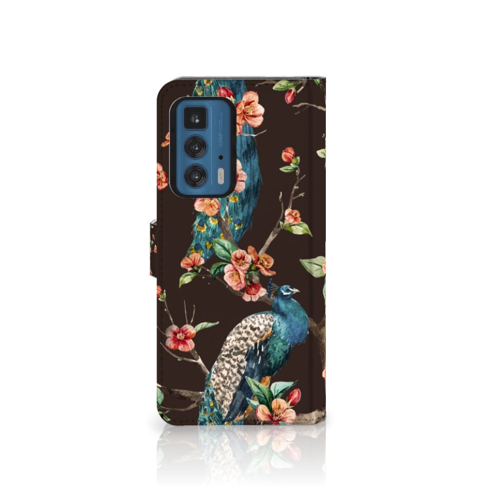 Motorola Edge 20 Pro Telefoonhoesje met Pasjes Pauw met Bloemen