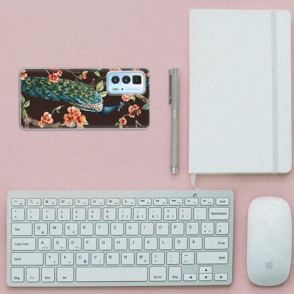 Motorola Edge 20 Pro TPU Hoesje Pauw met Bloemen