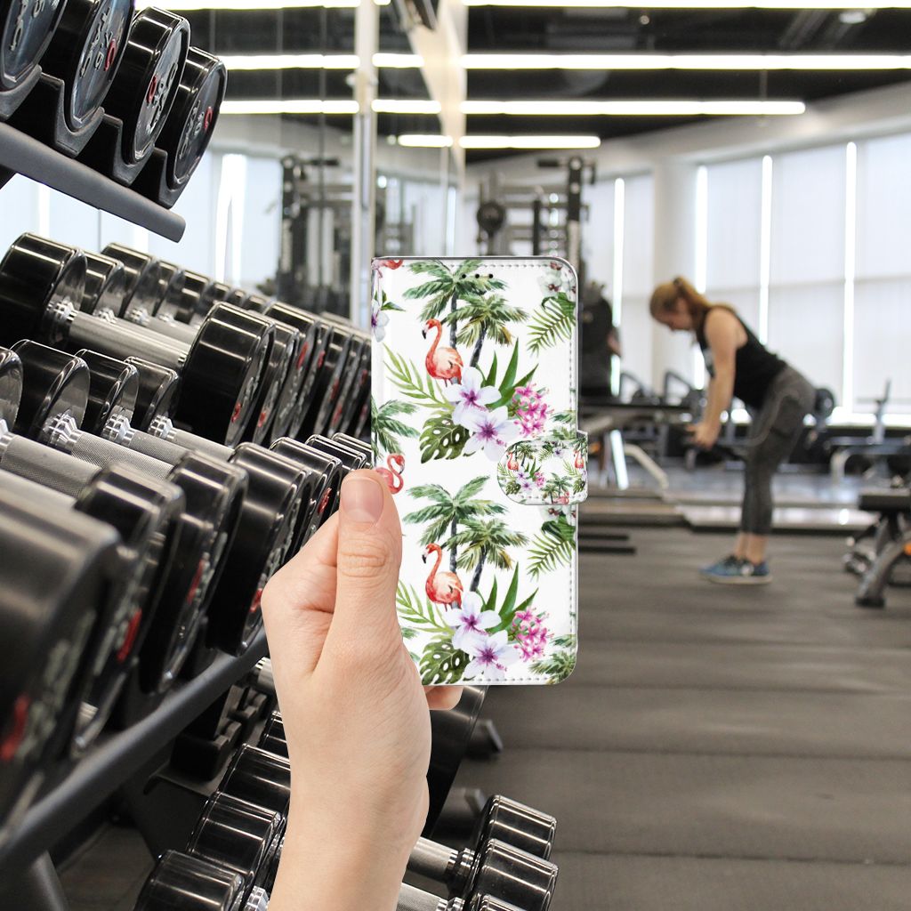 Motorola Edge 20 Pro Telefoonhoesje met Pasjes Flamingo Palms