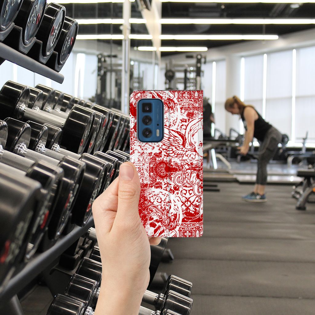 Mobiel BookCase Motorola Edge 20 Pro Angel Skull Rood