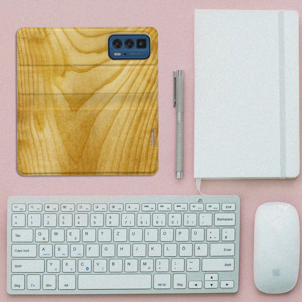 Motorola Edge 20 Pro Book Wallet Case Licht Hout