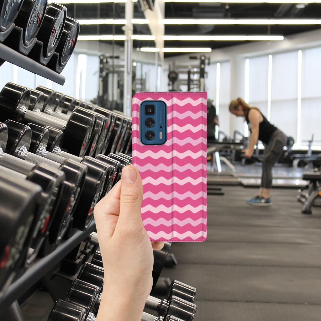 Motorola Edge 20 Pro Hoesje met Magneet Waves Pink