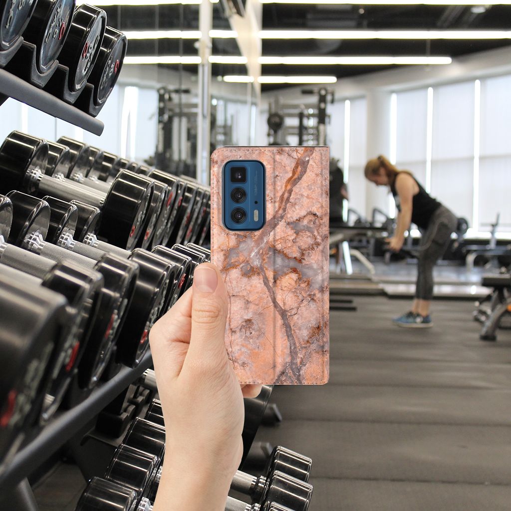 Motorola Edge 20 Pro Standcase Marmer Oranje