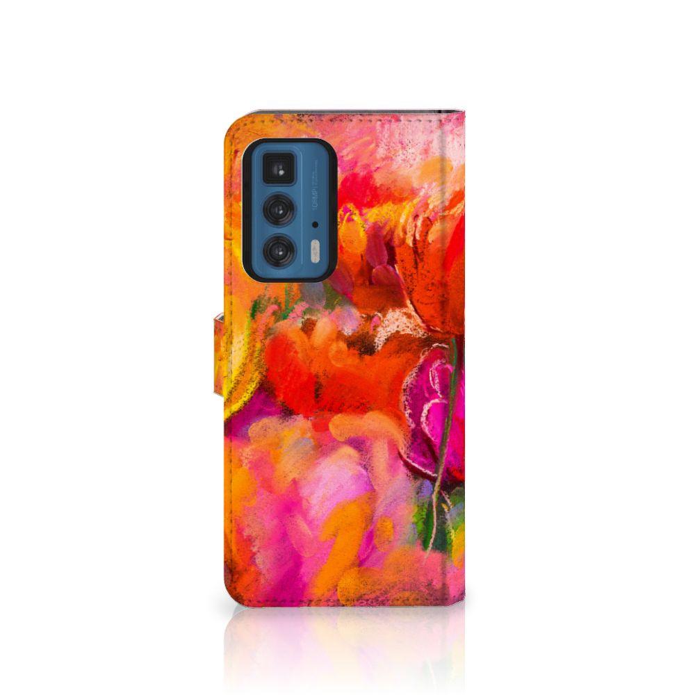 Motorola Edge 20 Pro Portemonnee Hoesje Flowers Pink DTMP