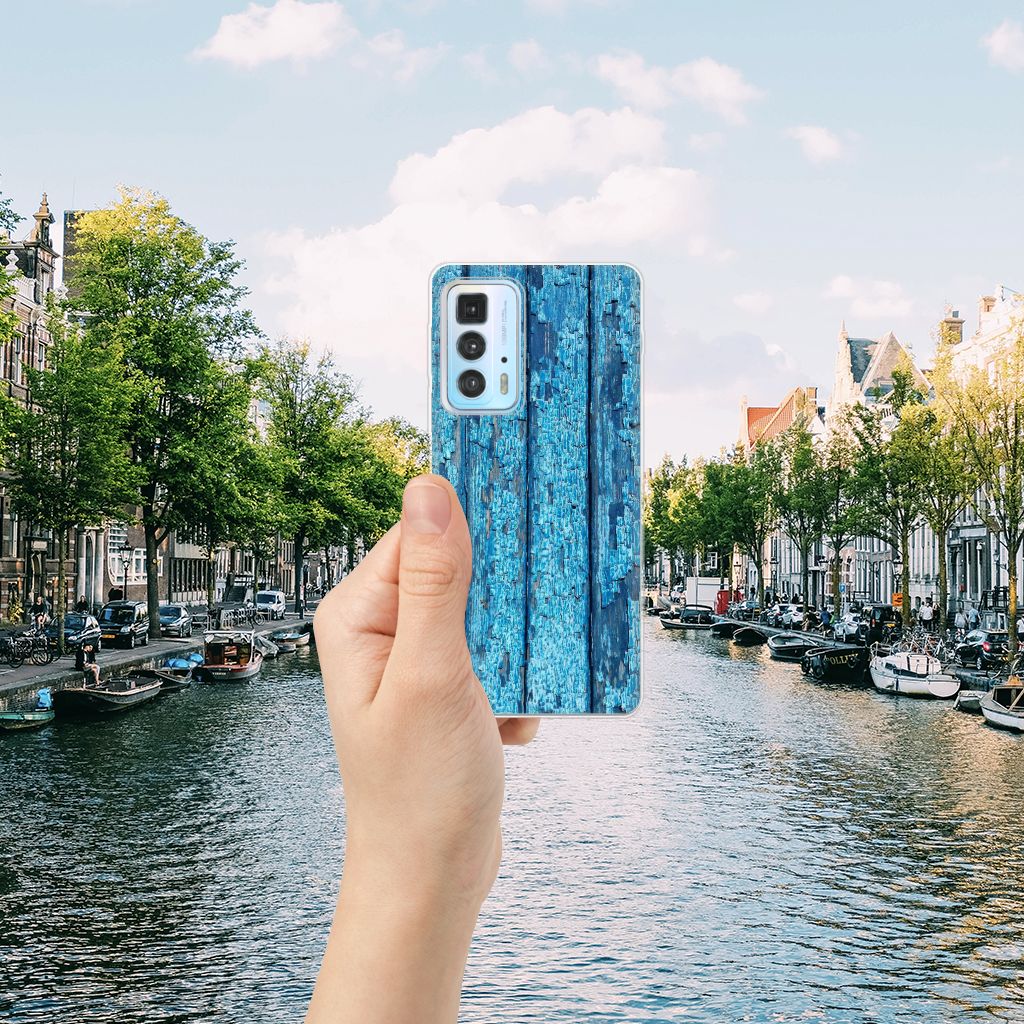 Motorola Edge 20 Pro Bumper Hoesje Wood Blue