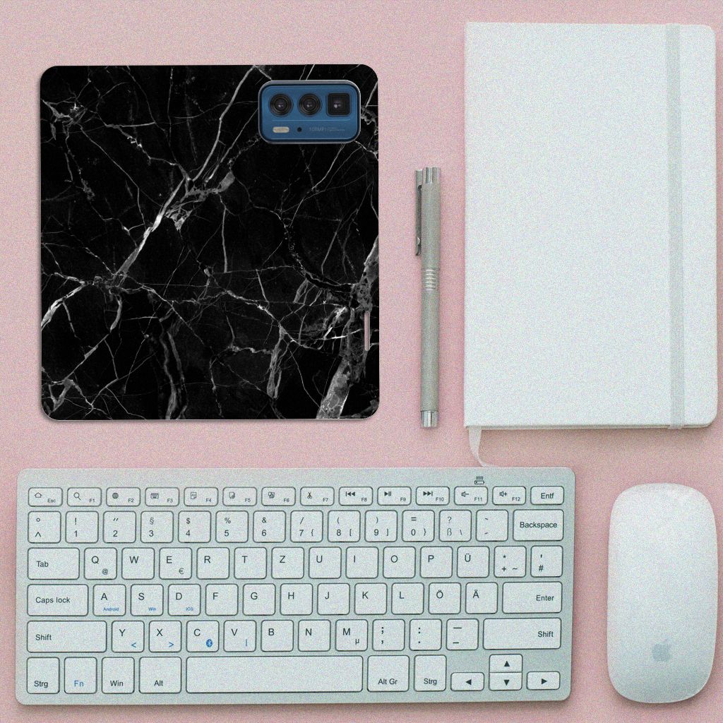 Motorola Edge 20 Pro Standcase Marmer Zwart - Origineel Cadeau Vader