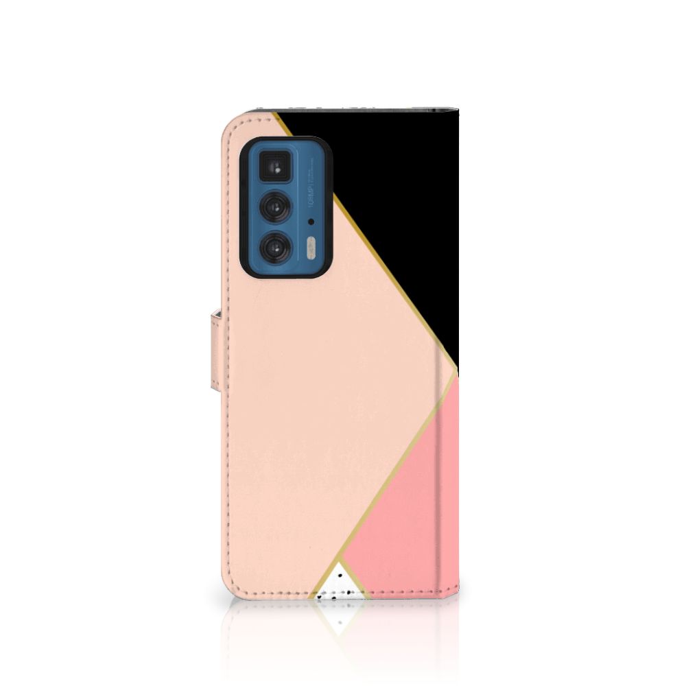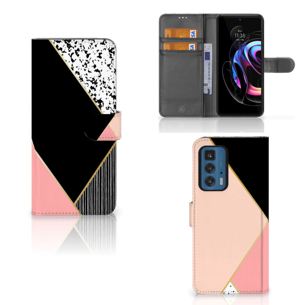 Motorola Edge 20 Pro Book Case Zwart Roze Vormen