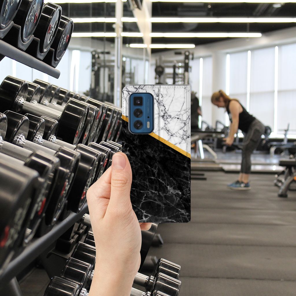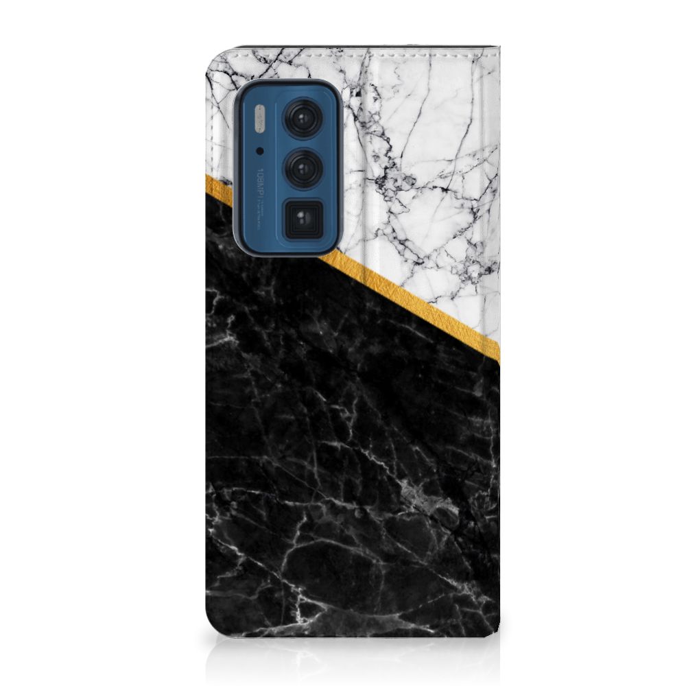 Motorola Edge 20 Pro Standcase Marmer Wit Zwart - Origineel Cadeau Man