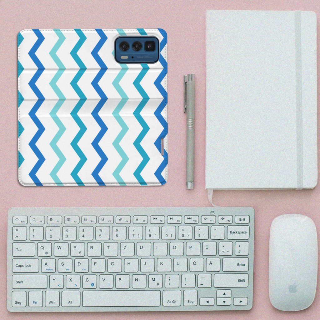 Motorola Edge 20 Pro Hoesje met Magneet Zigzag Blauw