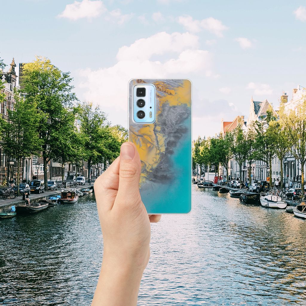Motorola Edge 20 Pro TPU Siliconen Hoesje Marble Blue Gold