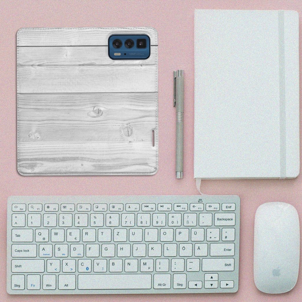 Motorola Edge 20 Pro Book Wallet Case White Wood