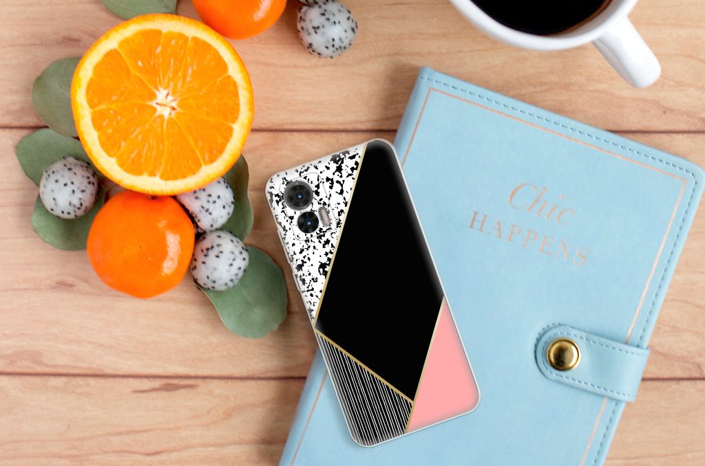 Motorola Edge 30 Neo TPU Hoesje Zwart Roze Vormen