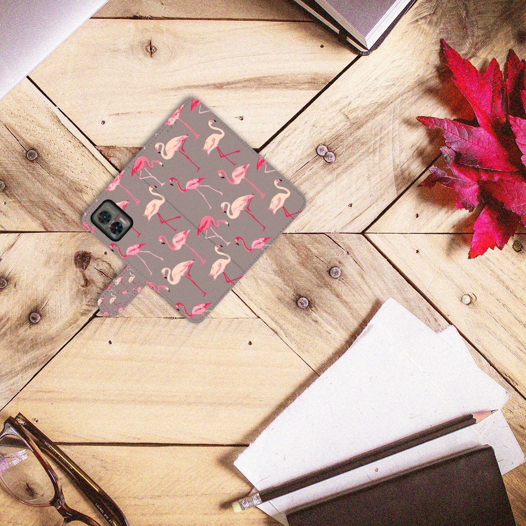 Motorola Edge 30 Neo Telefoonhoesje met Pasjes Flamingo